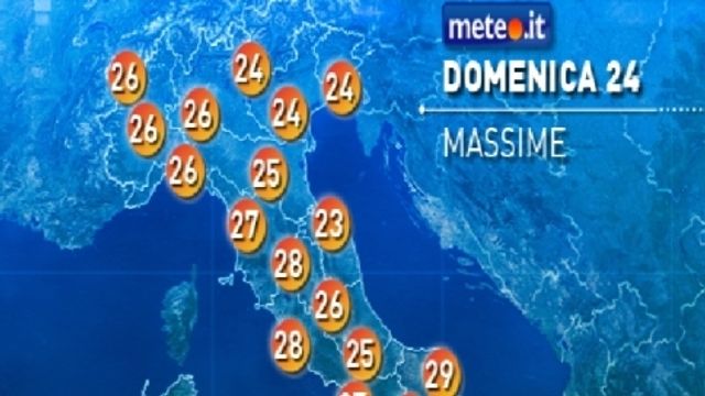 Le previsioni per domenica 24 agosto - Domenica giornata nettamente migliore, con bel tempo in gran parte dell'Italia, con un po' più di nubi al mattino in Triveneto, Emilia e Toscana e, nel pomeriggio, limitatamente ai rilievi friulani e sulle zone appenniniche di Emilia Romagna, Marche e Abruzzo, dove non si esclude qualche pioggia. Sole pieno al Nordovest settore centrale tirrenico Sud e Isole. Venti moderati di Maestrale in Sardegna, basso Tirreno e Canale di Sicilia.