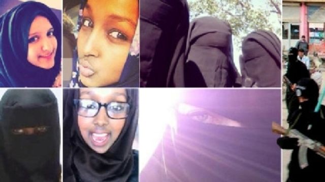Le gemelle Salma e Zahra Halane 16 anni, sono figlie di un rifugiato somalo nel Regno Unito. Hanno seguito in Asia il fratello che si era arruolato per primo nello Stato islamico. Adesso sono spostate con dei combattenti del Califfato. In una foto su Twitter, una di loro si mostra in burqa e un fucile AK47.