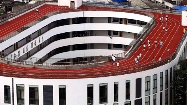 Tutti sul tetto per l'ora di ginnastica. I dirigenti di una scuola elementare cinese non si sono scoraggiati quando hanno scoperto di non avere a disposizione abbastanza terreno per realizzare un centro sportivo. E così hanno fatto costuire la pista di atletica sul tetto dell'edificio di quattro piani. Per la gioia, si può immaginare, dei prof che al piano di sotto tentano di insegnare... L'originale istituto si trova a Tiantai, nella provincia di Zhejiang.