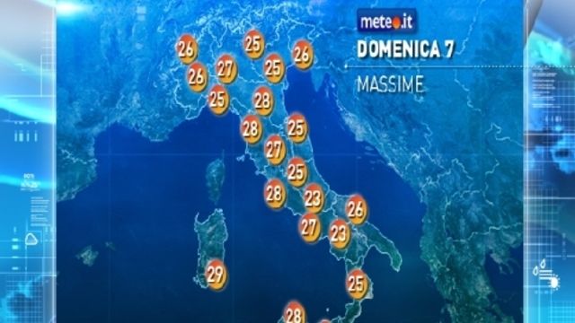 Lunedì cielo sereno nelle Isole; tempo in ulteriore miglioramento anche al Sud, con poche nubi lungo le coste e qualche isolato rovescio solo in Appennino. Situazione simile nelle regioni centrali, con prevalenza di bel tempo. Alternanza di sole e nuvole al Nord, con più schiarite in pianura e sulle coste, pochi rovesci pomeridiani su Alpi e Prealpi. Temperature stazionarie o in lieve aumento. Venti deboli.