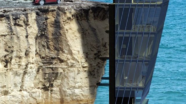 In Australia cresce la domanda di abitazioni adatte alle sue coste più estreme e la risposta dello studio Modscape Concept è una casa appesa alla scogliera. Dalla cima del promontorio si accede al primo piano dell'edificio organizzato verticalmente fino al quinto piano, che si affaccia al mare con una terrazza. Arredamento minimo e un'integrazione estrema con l'ambiente, per vivere in stretta comunione col mare.