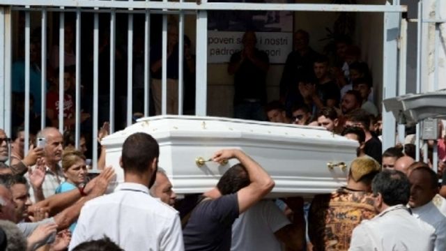 Accanto alla bara è rimasta la madre Flora, accompagnata dalla sorella, insieme con il marito che da lì non vuole allontanarsi. "Sta piovendo in paradiso, ora arrivi ed esce il sole perché tu porti il sole", dice papà Gianni, parlando con il figlio al quale raccomanda di "fare il bravo una volta arrivato lassù e non litigare con nessuno".