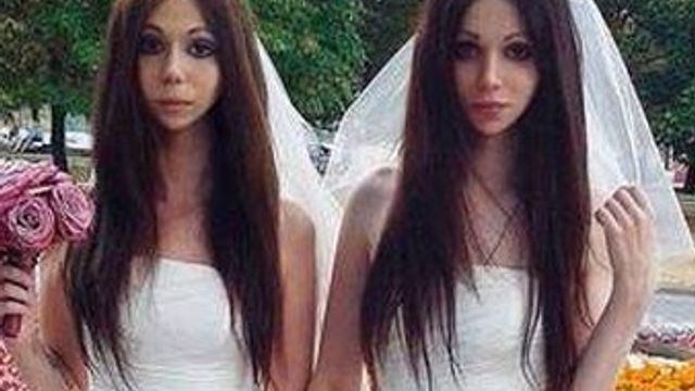 A prima vista sembrano gemelle identiche. In realtà, queste due spose russe, non sono sorelle e nemmeno omosessuali. All'anagrafe sono un uomo e una donna e si chiamano Dimitriy Kozhuhov ed Ellison Brux. Dimitriy ha 23 anni, si fa chiamare Alina Davis ed è un cross-dresser. Significa che si veste da donna per assomigliare alla sua consorte 21enne. In effetti i due sembrano l'uno la copia carbone dell'altra.