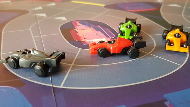 La prima fase di gioco è “l’asta”; qui si scoprono due carte, una che garantisce un’abilità speciale a chi la possiede e l’altra legata a un bolide colorato. Starà a voi decidere quanto puntare, giocando coperta una delle carte che avete in mano. Chi avrà la carta con il valore più alto abbinato al colore della vettura in vendita, prende abilità speciale e la pedina della quattroruote corrispondente. Attenzione però, i soldi che spenderete saranno detratti dal vostro capitale finale, quindi evitate di fare gli spendaccioni e puntate con attenzione. L’asta prosegue finché tutte le sei macchine sono state vendute; un giocatore può anche averne più di una, ma è obbligatorio che ogni partecipante abbia la sua monoposto.