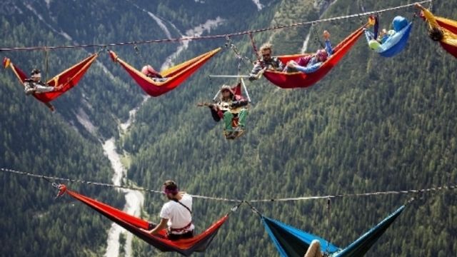 Atleti da tutto il mondo si sono ritrovati a Misurina (Belluno) per la terza edizione dell'International Highline Meeting di Monte Piana. Qui i funamboli delle montagne si ritrovano per camminare sospesi su una fettuccia di 2,5 cm. E non solo. Per i più ù temerari è possibile riposarsi o trascorrere la notte in compagnia, dormendo nelle amache montate sulle corde. La manifestazione non è di tipo competitivo e ha come scopo il lancio di questa sport estremo e la valorizzazione del territorio, patrimonio Unesco.