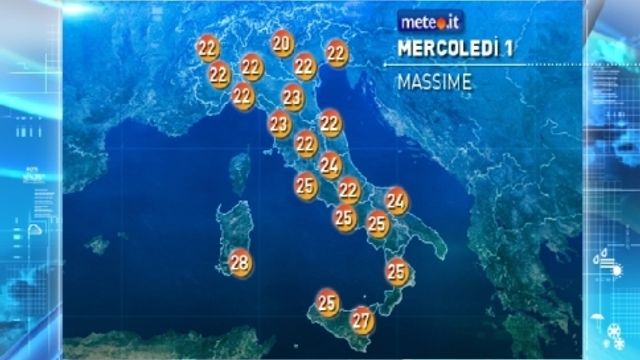 Le previsioni per giovedì 2 ottobre - Il mattino di giovedì vedrà ampie schiarite al Nord ed estremo Sud, con nebbie in diradamento in Val Padana. Nubi nel resto del Paese con piogge sparse su regioni del medio Adriatico e Lazio. Nel pomeriggio il tempo instabile si sposterà su Lazio, regioni meridionali e Sicilia occidentale. Isolati scrosci di pioggia tra l'interno della Sardegna e il cagliaritano. Tra sera e notte instabilità anche su alto Ionio e Sicilia orientale, mentre migliora in gran parte del Centro. Temperature massime in rialzo al Nord di 1-3 gradi, in calo invece in gran parte del Centro-Sud. Venti localmente moderati su alto adriatico e Sardegna.