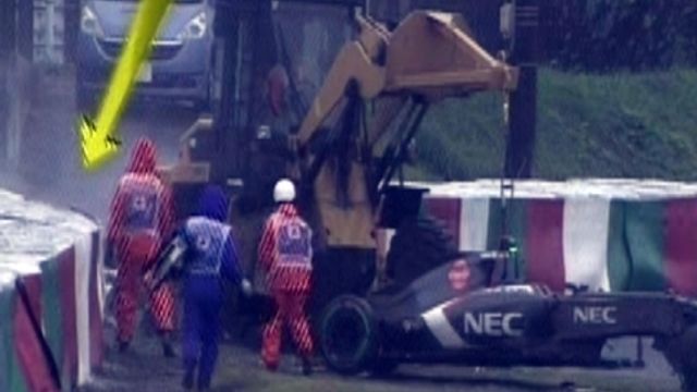 A sei giri dalla fine del GP del Giappone il pilota francese della Marussia Jules Bianchi ha perso il controllo della sua monoposto ed è andato a sbattere contro la gru entrata in pista per spostare la Force India di Sutil, uscito poco prima. La gara è stata subito sospesa vista la gravità della situazione. Bianchi è stato trasportato in ospedale, privo di sensi, in gravi condizioni.