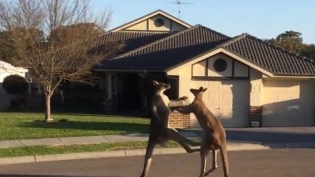 Per chi se li immagina sempre teneri e simpatici con tanto di cucciolo nel marsupio, è arrivato il momento di cambiare idea sui canguri. Eccone infatti due, nel Nuovo Galles del Sud, in Australia, alle prese con una lite da strada... senza esclusione di colpi.