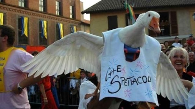 Lacchiarella, piccolo centro nella provincia Sud di Milano, domenica 12 ottobre ospita il Palio dell'oca, una curiosa gara che le bianche e simpatiche pennute disputano lungo le vie del paese. Il Palio segna il culmine dell'Autunno Ciarlasco, manifestazione giunta alla sua 38esima edizione. e attira ogni anno migliaia di curiosi e tanti tifosi accaniti, appartenenti ai sette rioni nei quali si suddivide il paese.