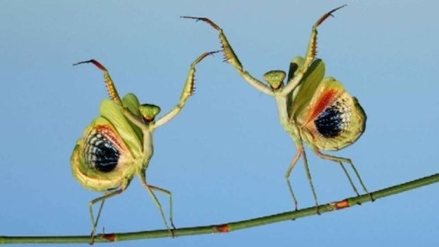 Quando la Natura... si scatena. Il fotografo cipriota Hasan Baglar ha immortalato due esemplari di mantide religiosa in pose assolutamente incredibili. I due insetti sembrano infatti danzare a favore di camera, con le zampe anteriori sollevate e le ali dispiegate. Si tratta di un atteggiamento che la specie assume per tenere lontani eventuali rivali o predatori. Fatto sta che sembrano ballare a ritmo di twist, charleston e tango. E con tanto di sorriso.