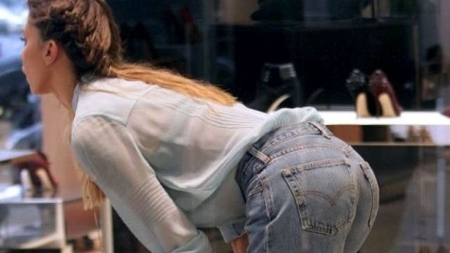 Jeans e camicetta trasparente, con reggiseno a vista, sexy anche in abbigliamento casual Belen Rodriguez fa shopping e mostra il lato B. Piegata, mentre prova un paio di scarpe e si guarda allo specchio, la showgirl si posiziona a favore dei flash, che immortalano il suo fondoschiena. Sempre un bello spettacolo.