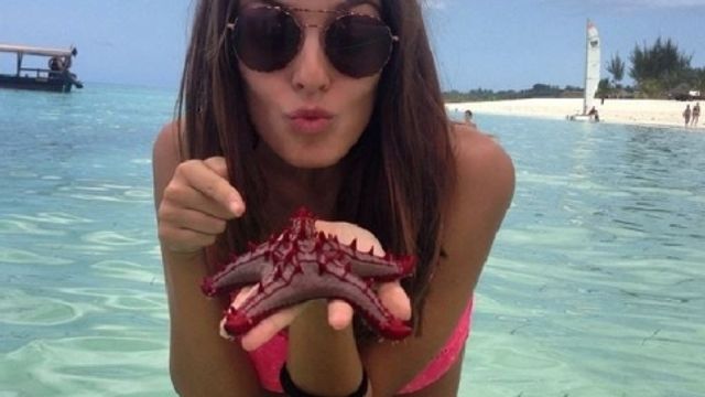 Spiaggia bianca, mare turchino e una stella marina in mano, Alessia si trova in un vero e proprio paradiso terrestre, dove si è potuta permettere una vacanza fuori stagione. La sua carriera è in pieno fermento e dopo aver condotto con Alessia Ventura il programma di Rete 4 Blu Beach Paradyse Story, l'ex velina ci ha preso gusto a viaggiare nei posti più belli del Pianeta e non si fa mancare nulla. Curve sexy in micro bikini e sorriso smagliante, il bancone di Striscia le ha sicuramente portato fortuna e lei se la tiene stretta.
