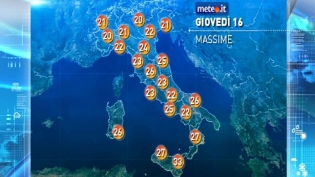 Le previsioni per venerdì - Venerdì al mattino transiteranno molte nuvole al Nord e sul settore tirrenico fino alle zone interne. Tempo poco nuvoloso su basse Marche, Abruzzo, resto del Sud e Isole. Piogge sparse su Levante Ligure e alta Toscana ma anche sul Friuli Venezia Giulia. Qualche pioggia anche sulle Alpi di confine di Val d'Aosta e Alto Adige. Nel pomeriggio nuvole in attenuazione su Piemonte, Valle d'Aosta e Lombardia qualche rovescio insisterà ancora tra Levante ligure e alta Toscana, ma le precipitazioni saranno in attenuazione in serata. Venti di Libeccio a tratti forti sul Mar Ligure con raffiche fino a 50-60 km/h, venti moderati su Sardegna, Toscana, Umbria, Romagna, Marche e alto Adriatico. Temperature stabili o in lieve rialzo, con valori di nuovo in generale al di sopra delle medie, e in generale comprese tra i 20°C e i 28°C, con qualche punta vicina ai 30°C in Sicilia.
