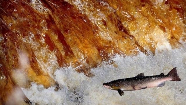 Nelle acque salate dell'Atlantico i salmoni crescono grazie all'abbondanza di plancton, aringhe e piccoli pesci. Ma dopo quattro anni sentono l'istinto di tornare a riprodursi nell'acqua dolce dove sono nati. E così raggiungono la foce del fiume e iniziano una faticosa risalita nuotando controcorrente. Sono pochi gli esemplari che raggiungono la meta: quelli che riescono si riproducono e poi, rimasti senza forze a causa del consumo energetico per il viaggio, muoiono. Le immagini sono stata scattata presso l'affluente del fiume Ouse, nell'Inghilterra settentrionale.