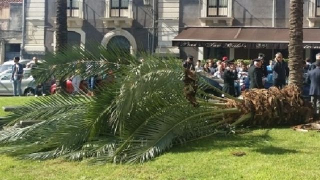 Una donna è morta travolta da una palma sradicata dal forte vento in piazza Cutelli, nel centro di Catania. La vittima, moglie di un sottufficiale della guardia di finanza, era seduta su una panchina con la figlia. La pianta era stata potata di recente dal Comune e non presentava segni visibili di infezione da punteruolo rosso. La Procura ha aperto un'inchiesta.