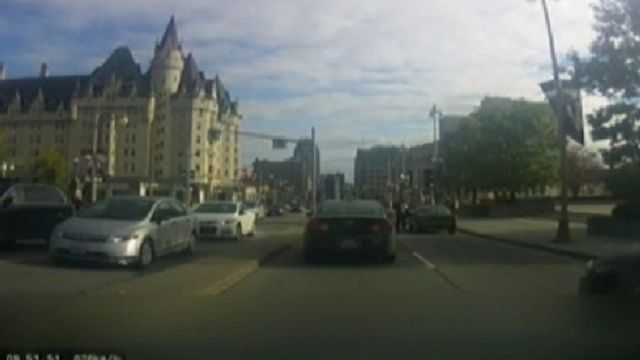 L'attentatore di Ottawa ha agito da solo. A confermalo sono queste immagini amatoriali nelle quali si vede l'uomo lasciare a piedi con tutta calma il National War Memorial dopo aver sparato e ucciso una guardia. Michael Zehaf-Bibeau, questa la sua identità, sale su un'auto senza targa parcheggiata in Wallington Street. In mano sembra avare un lungo oggetto di colore scuro. Il filmato è stato ripreso da una telecamera di sicurezza montata su un'auto che passava davanti al luogo della prima sparatoria.