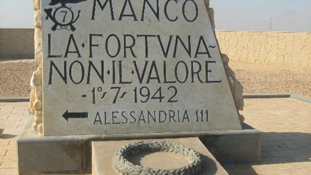"Mancò la fortuna, non il valore". Queste parole accolgono i visitatori a poco distanza dal sacrario di El Alamein, in arabo "le due bandiere", nome che passò alla Storia per indicare una delle più violenti battaglie della Seconda guerra mondiale. La sconfitta delle forze italo-tedesche guidate dalla "volpe del deserto", Erwin Rommel, contro gli inglesi del generale Montgomery segnò i destini del fronte nordafricano.