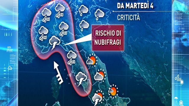 Dopo un weekend all'insegna di sole e temperature miti, secondo i meteorologi del Centro Epson Meteo è "sempre più probabile un'ondata di forte maltempo la prossima settimana, per l'arrivo di un'intensa perturbazione". Bloccata dall'alta pressione sui Balcani, la perturbazione "potrebbe dare luogo a forti rovesci e temporali, con il rischio di locali nubifragi già da martedì 4 novembre sulle zone più occidentali della Penisola".