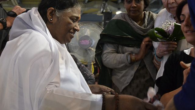 Ha fatto degli abbracci la sua missione. Amma, santona indiana 61enne soprannominata Mata Amritanandamayi, finora ha abbracciato 32 milioni di persone e da fenomeno locale è diventata un personaggio famoso in tutto il mondo. Per tre giorni, dall'8 al 10 novembre il suo tour europeo "Embracing the World" fa tappa al Centro Congressi ed Esposizioni Malpensa Fiere di Busto Arsizio (VA). Tantissimi devoti attendono ore per un abbraccio di pochi secondi.