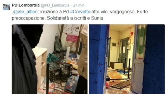 La sede del Pd di Corvetto è stata sfasciata, con librerie a terra e ovunque macchie di vernice rossa. "Noi eravamo una ventina ha spiegato Stefano Chiappelli, segretario generale del Sunia di Milano - la nostra preoccupazione e stata di proteggere i presenti. Alcuni per la paura sono scappati". Sul posto sono intervenuti l'assessore alla sicurezza, Granelli e il vice sindaco De Cesaris.