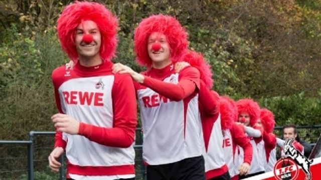 I giocatori della squadra di Bundesliga si sono mascherati da clown nell'allenamento dell'11 novembre, giorno del tradizionale carnevale nella città della Vestfalia. Con parrucche e nasi rossi, gli uomini di Stöger si sono presentati a Geißbockheim divertendo i tifosi