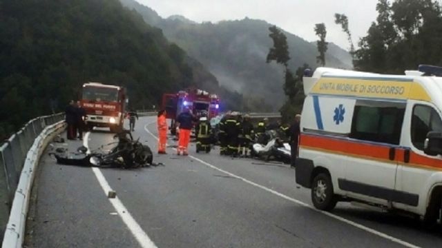 Sei persone sono morte in un maxi-incidente avvenuto sulla strada statale Jonio-Tirreno, nei pressi di Cinquefrondi (Reggio Calabria). Due le automobili coinvolte, una Yaris e una Mini Cooper, che si sono scontrate frontalmente. A causa del violento impatto la Yaris è caduta in un burrone profondo una quarantina di metri, mentre l'altra vettura è rimasta sulla carreggiata.