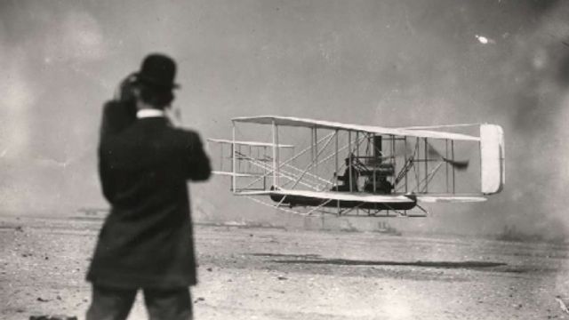 Il 17 dicembre 1903 i fratelli Orville e Wilbur Wright riuscirono per la prima volta a far volare un aereo a motore guidato da un essere umano. Il velivolo, chiamato "Flyer", rullò lungo una rotaia che impediva ai pattini di affondare nella sabbia e decollò. Rimase in aria 12 secondi e, dopo aver percorso 36 metri, tornò a terra in un atterraggio morbido. Nel corso della stessa giornata i due inventori statunitensi compirono altri tre voli, l'ultimo dei quali durò 59 secondi e coprì 260 metri.