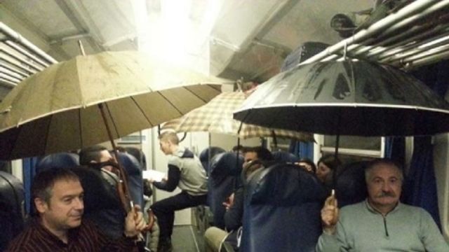 Piove in un vagone del treno della tratta Aulla-Pisa e i pendolari per ripararsi aprono gli ombrelli. A "denunciare" la situazione è stata una ragazza, che ha pubblicato alcuni scatti su Facebook su una pagina creata ad hoc dal titolo significativo "I problemi della Linea FS Pisa-Aulla". Non è la prima volta che si presentano disagi simili. Già un anno fa, nel novembre 2013, i passeggeri della medesima tratta lamentarono la stessa situazione.