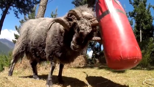 Forse si sta allenando per il titolo di campione dei pesi massimi ovini o forse lo ha semplicemente considerato un intruso nel suo territorio. Questo ariete proprio non sopporta il sacco da boxe appeso vicino a lui e decide di affrontarlo come un vero pugile. Veloce come Mohammed Ali e potente come Mike Tyson si scaglia con rabbia contro il sacco, fino al "gancio" finale, che fa volare via l'attrezzo e decreta la vittoria del boxeur caprino.
