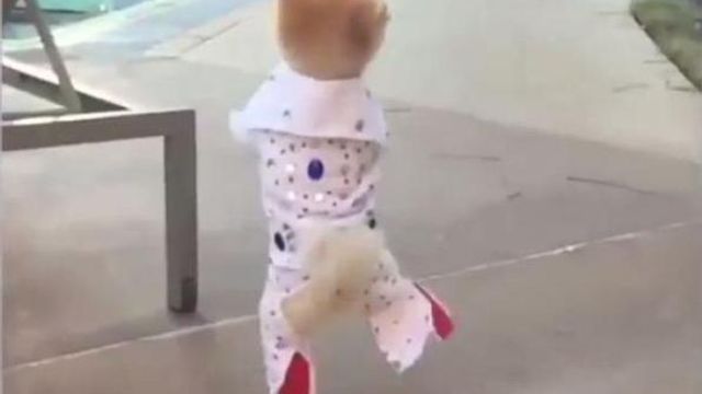 Zompettando qua e là, Jiff The Pomeranian sta diventando una vera e propria stella del web. Il cagnolino infatti, che ha pure un account Instagram personale, è stato inquadrato mentre ballava a modo suo una canzone di Elvis Presley, per giunta con il suo stesso vestito addosso.
