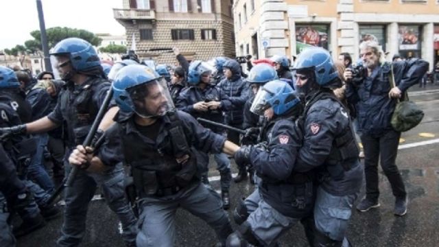 Caricati i manifestanti - Le forze dell'ordine hanno caricato i manifestanti nel centro della Capitale dopo che il corteo ha tentato più volte di forzare il cordone di sicurezza per arrivare al Senato. Alcuni contusi.
