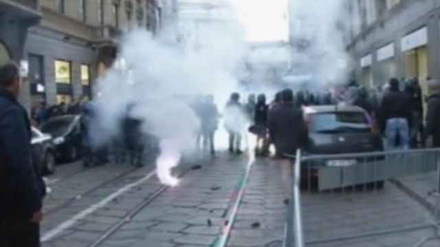 Un carabiniere è rimasto ferito all'occhio durante gli scontri fra forze dell'ordine e antagonisti a Milano davanti alla Scala, in occasione della Prima del Fidelio: i dimostranti hanno lanciato contro militari e agenti bottiglie, sassi e fumogeni. Le forze dell'ordine hanno dato il via a una carica contro i manifestanti chiudendoli in un piccolo spazio in via Case Rotte.