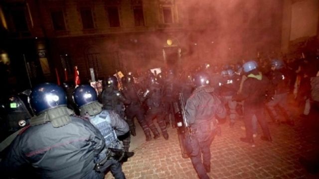 Due carabinieri sono rimasti feriti negli scontri con i manifestanti in piazza della Scala a Milano, in occasione della Prima del Fidelio. Gli antagonisti dei centri sociali hanno lanciato contro le forze dell'ordine bottiglie, sassi e fumogeni colpendo un militare alla spalla e un secondo alla gamba. Per il primo non è stato necessario il trasporto in ospedale, mentre il secondo è stato trasferito all'Istituto ortopedico Gaetano Pini.