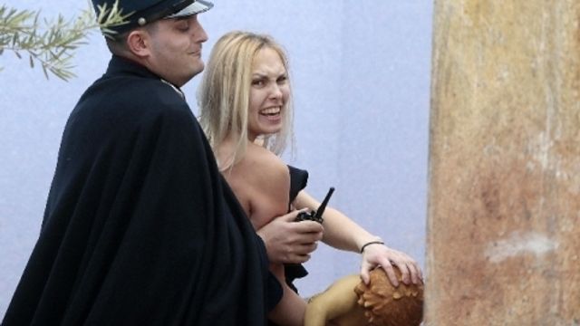 Protesta delle Femen in piazza San Pietro, in occasione della benedizione Urbi et Orbi: una ragazza a seno nudo e con scritto sul corpo la parola "god" è riuscita a salire fin sul presepe all'interno della piazza urlando slogan contro la Chiesa e prendendo in mano il bambinello. La giovane donna è stata bloccata, fatta rivestire e portata via dalle forze dell'ordine.