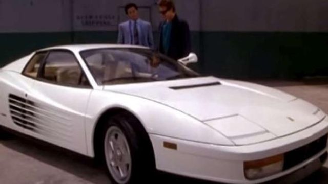 La Casa di Maranello consegnò agli Universal Studios due fiammanti berlinette di colore nero (erano caratterizzate da un solo specchio retrovisore sul lato del guidatore) ma il regista Michael Mann decise di cambiarne il colore in bianco perché le attrezzature di ripresa del tempo non permettevano una qualità ottimale delle immagini di auto scure. La Testarossa sfrecciò fedelmente guidata da Crockett nella terza, quarta e quinta stagione di "Miami Vice".
