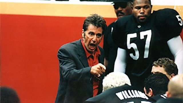 Il film racconta la storia degli Sharks, una squadra di football in crisi di risultati dopo la morte dell'anziano proprietario. L'allenatore e' Tony D'Amato, un coach vecchio stile, interpretato da un incredibile Al Pacino. Il monologo dell'attore, citato da Renzi, è una delle pagine più amate del cinema: Al Pacino fa un discorso alla squadra prima della partita decisiva dei play off, incitando i giocatori a comportarsi come un collettivo e a combattere per ogni centimetro di campo.