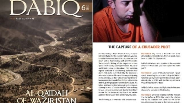 "Sai cosa l'Isis farà di te?", "Sì, mi ucciderà". Sono le ultime battute dell'intervista pubblicata sulla rivista dei jihadisti, Dabiq, al pilota giordano rapito nei giorni scorsi. Dalle pagine del magazine, il 26enne Muadh al Kassasbe ricostruisce il suo rapimento. "Un missile ha colpito il mio aereo F-16 mentre sorvolavo la regione di Raqqa. Mi sono lanciato con il paracadute e, una volta atterrato, sono stati preso da soldati dell'Isis".