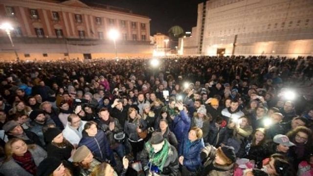 I cellulari illuminano la piazza - dove è intervenuto anche il sindaco - ma c'è anche chi ha acceso delle candele. "Non conoscono limiti di anni le sue canzoni" dice una donna di 58 anni che racconta di aver seguito il cantante fin dai primi passi. La piazza intonano anche altri brani famosi come "Nero a metà".