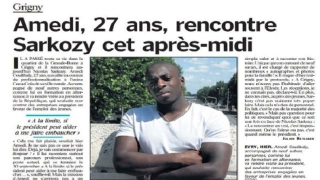 C'è un incontro con il presidente francese Nicolas Sarkozy nel curriculum di Amedy Coulibaly. Nel 2009, durante una visita del Capo dello Stato francese a Grigny dove il giovane era stato da poco assunto come apprendista nella locale fabbrica della Coca-Cola, proprio Coulibaly era uno dei nove neo-assunti che Sarkozy si era detto disponibile ad incontrare.
