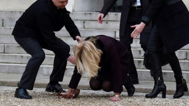 Capitombolo all'Eliseo per la premier danese Helle Thorning-Schmidt che, tradita dal tacco 12, è scivolata sulle scale del palazzo presidenziale francese. Il fuoriprogramma è accaduto nel giorno della marcia conto il terrorismo tenutasi a Parigi.