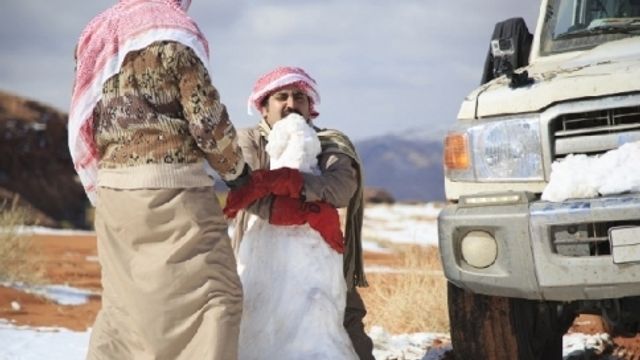 La copiosa neve che è scesa nella regione di Tabuk, 1.500 km a nord della capitale Riad in questi giorni, ha ispirato la realizzazione di qualche pupazzo di neve e di diversi cammelli, molti dei quali bardati con sciarpe di squadre locali.