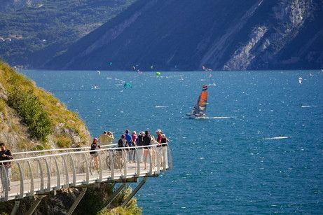 La passerella, inaugurata nel 2018 e già diventata un must, è la prima tranche di una grande opera di mobilità progettata per ciclisti e pedoni, che vedrà la realizzazione di un percorso ad anello lungo tutto il perimetro del Garda: collegherà fra loro 19 località e sarà la pista ciclabile più lunga d'Europa. Si tratta di un tragitto slow, con limite di 10 km/h, dedicato a famiglie con bambini, cicloamatori a bassa velocità e tutti coloro che vogliano godere dello strepitoso panorama in tutta tranquillità.