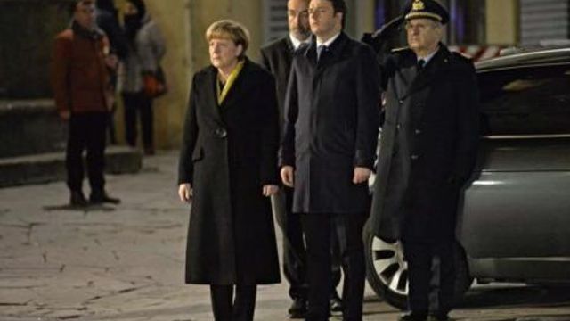 E' stato Matteo Renzi ad accogliere la cancelliera Angela Merkel a Palazzo Vecchio, a Firenze. Il sindaco Dario Nardella ha twittato la firma dell'illustre ospite insieme al presidente del Consiglio Matteo Renzi. Prima di salire in Sala delle Udienze, il premier ha fatto da guida illustrando alla Merkel gli affreschi del Salone dei Cinquecento. Lei. "Ringrazio i fiorentini".