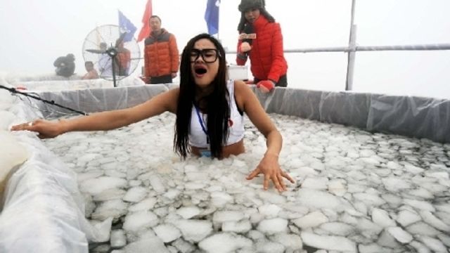 Restare il più possibile immersi in una vasca gelata piena di ghiaccio. E' la sfida estrema andata in scena a Zhangjiajie, in Cina. Per rendere la gara ancora più sadica, gli organizzatori hanno obbligato i partecipanti a mangiare un gelato abbracciando i blocchi ghiacciati. C'è chi ha resistito addirittura 50 minuti.