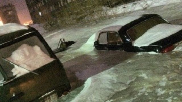 La cittadina siberiana di Dudinika è solita affrontare inverni rigidissimi. Ma quest'anno i -40 gradi raggiunti nei giorni scorsi hanno fatto esplodere le tubazioni dell'acquedotto: e così volenti o nolenti i circa 20mila abitanti al posto delle strade hanno trovato un'immensa pista ghiacciata che non ha risparmiato case, auto o camion.