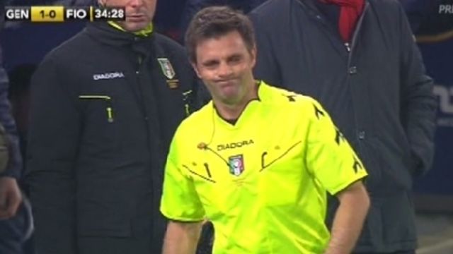 L'arbitro di Genoa-Fiorentina, Nicola Rizzoli, al 35' ha subito un infortunio e ha dovuto fermare il gioco per alcuni minuti. Dopo aver verificato di non poter riprendere, l'arbitro della finale Mondiale è stato sostituito nella direzione dal primo addizionale, Marco Di Bello. Rizzoli lo ha sostituito come giudice di porta.