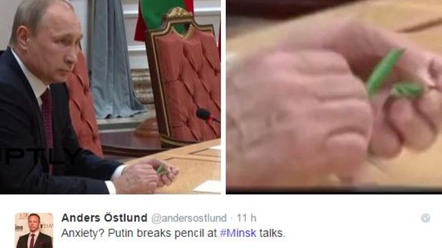 © twitter|Durante il vertice notturno, Putin era nervoso a tal punto da spezzare una matita. L'immagine ha fatto il giro del mondo