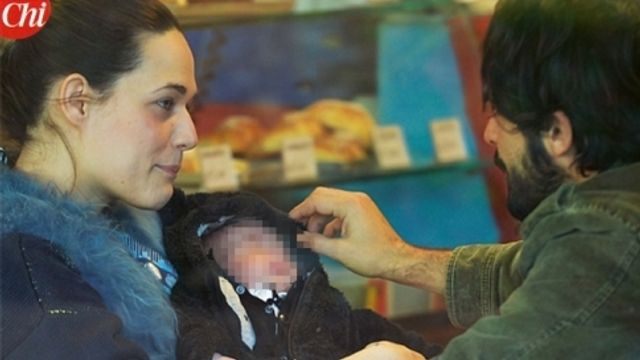 L'attrice, capelli raccolti, look rock e trendy, ha il volto struccato, ma gli occhi pieni d'amore per i suoi uomini. Marco è premuroso e attento, l'aiuta nella gestione del bimbo, ma non dimentica di tenere d'occhio la sua bella mogliettina. Poi escono dal locale e si dirigono verso casa: Bocci alla guida della carrozzina con incidere sicuro e orgoglioso, lei dolce e sognante con Enea tra le braccia.