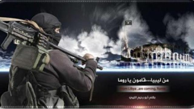 Spunta anche un'immagine della bandiera nera dell'Isis sul Colosseo nell'ultima provocazione propagandistica dello Stato islamico. Su Twitter un account affiliato allo Stato islamico libico ha pubblicato la foto di un jihadista armato, davanti al mare, che guarda il Colosseo sullo sfondo. Una scritta recita l'Isis "dalla Libia sta arrivando a Roma".