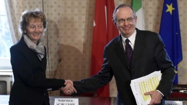C'è l'accordo tra Italia e Svizzera in materia fiscale. Lo hanno firmato il ministro Pier Carlo Padoan e il consigliere federale Eveline Widmer-Schlumpf. Si pongono così le condizioni per la fine del segreto bancario tra i due Paesi: la Svizzera può uscire dalla black list fiscale-finanziaria. Grazie all'intesa i due Paesi potranno scambiarsi le informazioni finanziarie sui contribuenti, in seguito a una richiesta dell'Agenzia delle entrate.